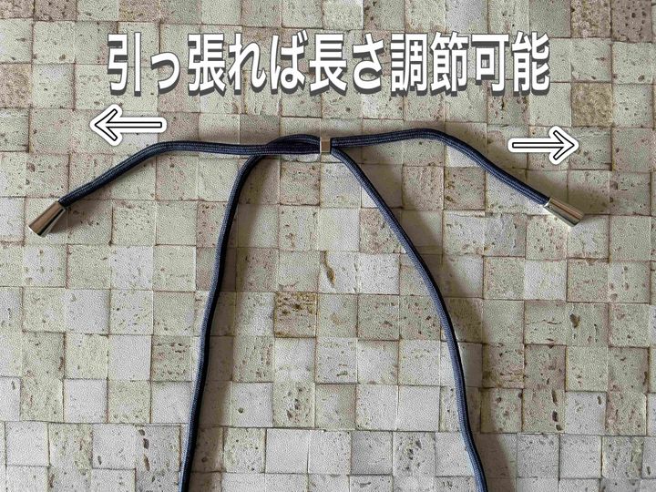 引っ張るだけで調節でき、調節は無段階なので好きな長さにできますよ。