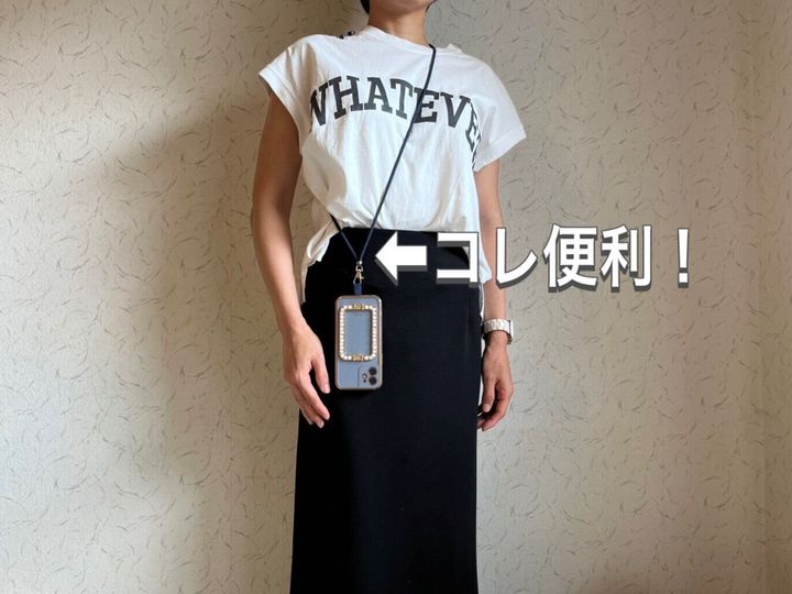 子どもの学校行事など、頻繁にスマホで写真を撮りたい時、わざわざカバンから出し入れしたり、ずっと手に持っているのはちょっと大変。