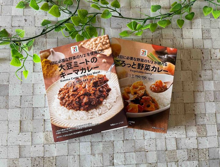 ご紹介するのは、セブンイレブンで販売されているレトルトカレー、セブンプレミアムの「大豆ミートのキーマカレー」(257.04円)と「ごろっと野菜カレー」(192.24円)です。