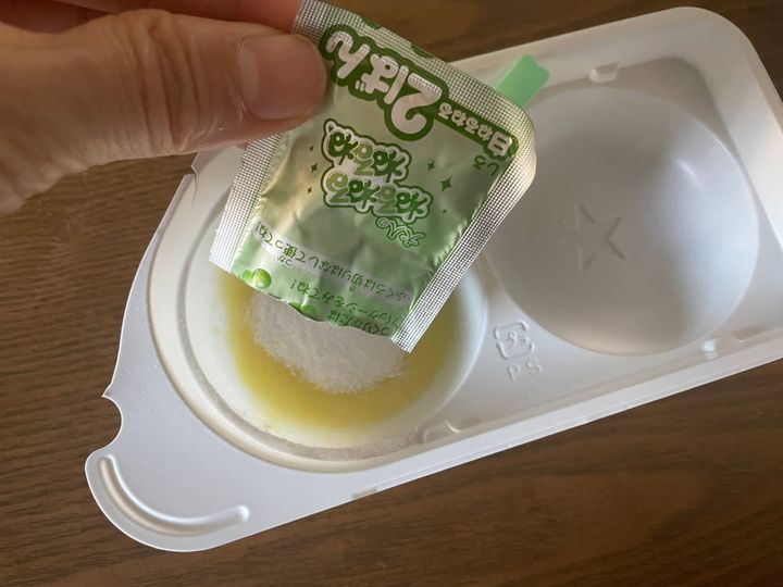 中を開けてみると、子どもが食べている「ねるねるねるね」とほぼ同じ。子どもの頃とも同じです。