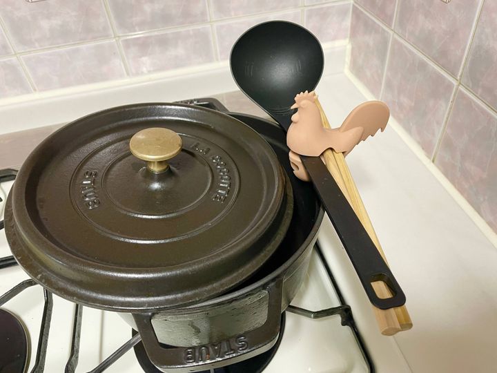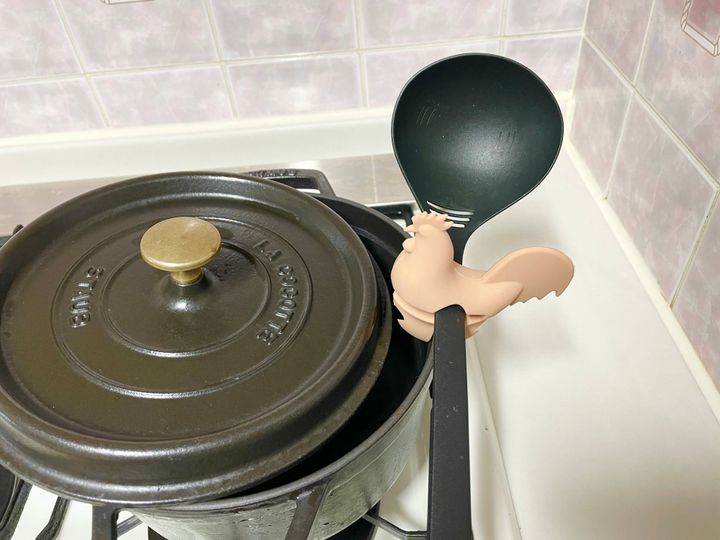 鍋に付けられるクリップ式のお玉置きは、初めて見た商品。鍋に付けてお玉を浮かせられると、コンロ周りがスッキリしますね。かわいくてオシャレだから、キッチンにあるとテンションもアガりますよ。おすすめ商品です。