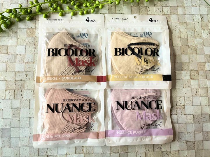 絶妙カラーでおしゃれなマスクをお店で見た瞬間、そこにあった全色をカゴへ入れてしまいました。バイカラーマスクは3色発売中ですが、私が行った店舗には2色しかなく、人気の高さがうかがえます。見つけたら迷わず買いが正解ですよ。