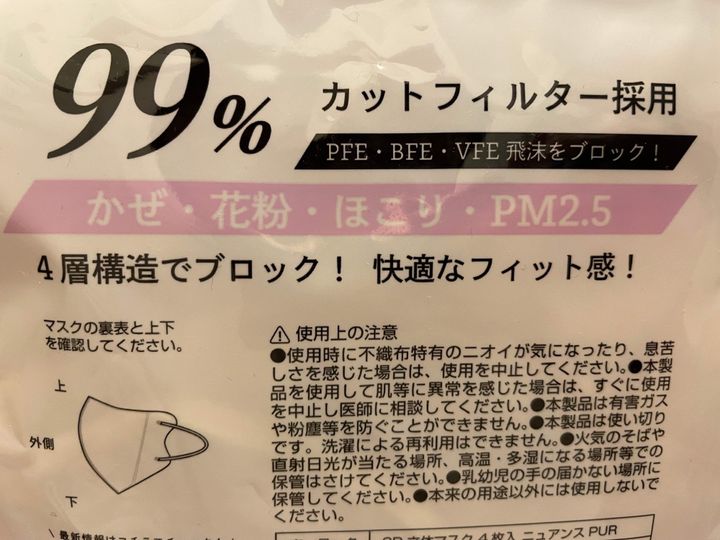 かぜ、花粉、ほこり、PM2.5をブロックしてくれますよ。