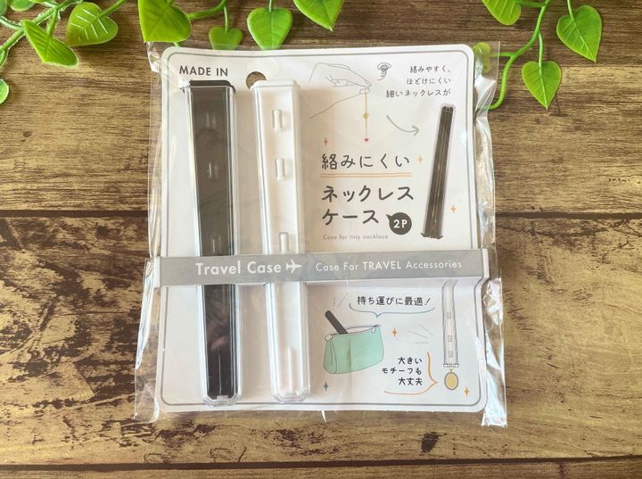 ご紹介するのは、ワッツの「絡みにくいネックレスケース」です。黒と白の2個入りで価格は110円。