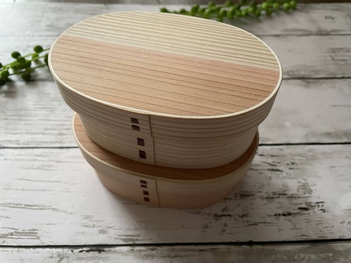 小さめサイズなので、2個買って二段弁当として使うのがおすすめ!2つ買っても1,980円ですよ。「曲げわっぱ」の2段弁当がこの値段では買えませんよね。