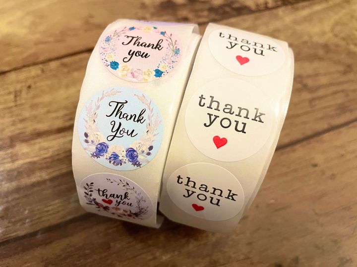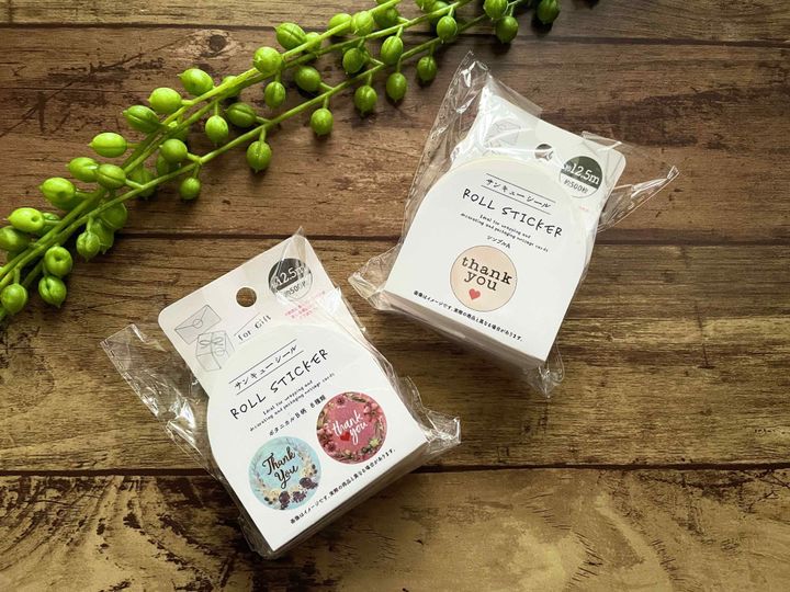 このシールは、すべてに「thank you」の文字が書かれているんです。ありがとうの気持ちを、ちょっと伝えたい時に便利ですよ。
