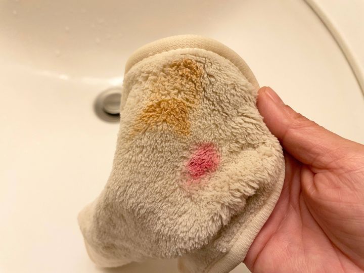 普通に洗ってみたところ少しメイクが残ってしまいましたので、部分洗いをしてから洗うのがいいかもしれませんね。