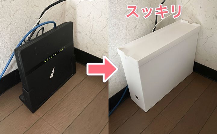 床に直置きしていたWi-Fiルーターを、ダイソーファイルボックスに入れてみました。