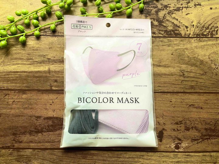 「きれいな色のバイカラーマスクが100均で買える」と瞬く間にSNSで大人気になり、一時は入試困難だったほどなんです。私もパープル×ダークグレーしか入手できませんでした…。