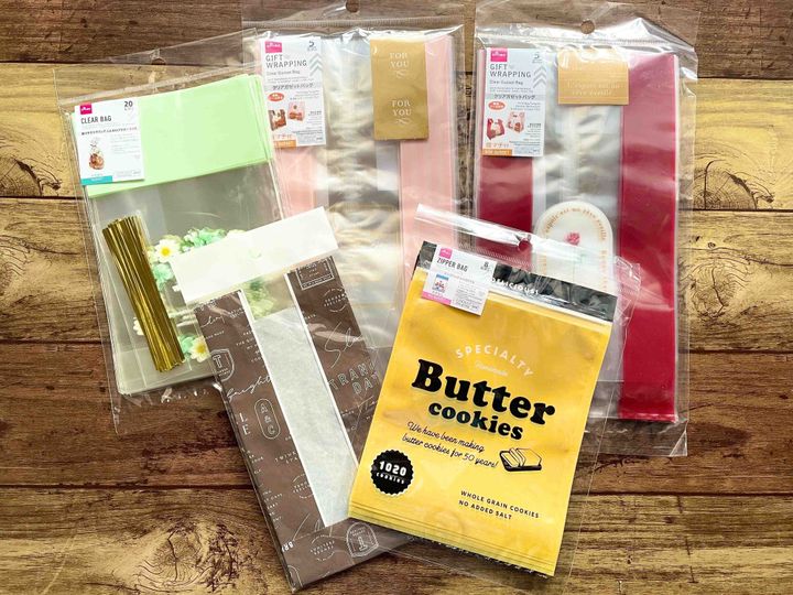 お菓子をおすそわけしたり、旅行のお土産を渡したり、集金のお金を入れたり。ちょっとした袋があるといいなと思う場面って、結構ありますよね。そんな時に、可愛くて小さなラッピング袋があると意外と重宝します。ラッピング用品は、今この時期に100均で買っておくのがおすすめですよ。