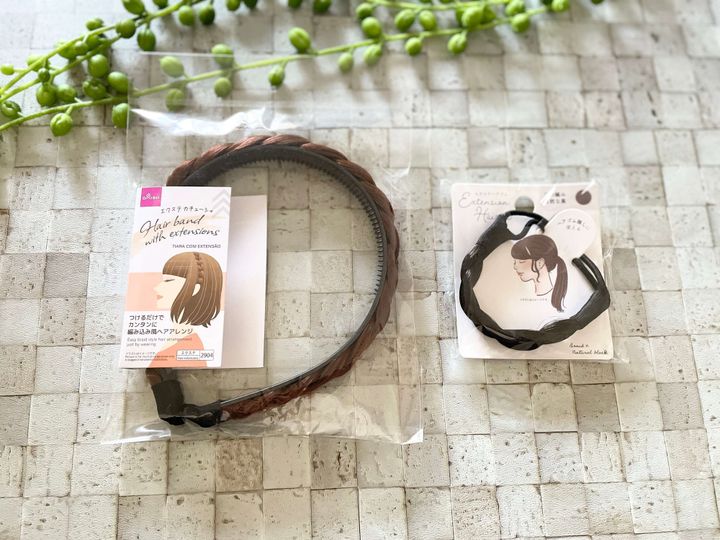 ご紹介するのは、ダイソーの「エクステカチューシャ」と「エクステヘアゴム」です。価格は両方ともひとつ110円。