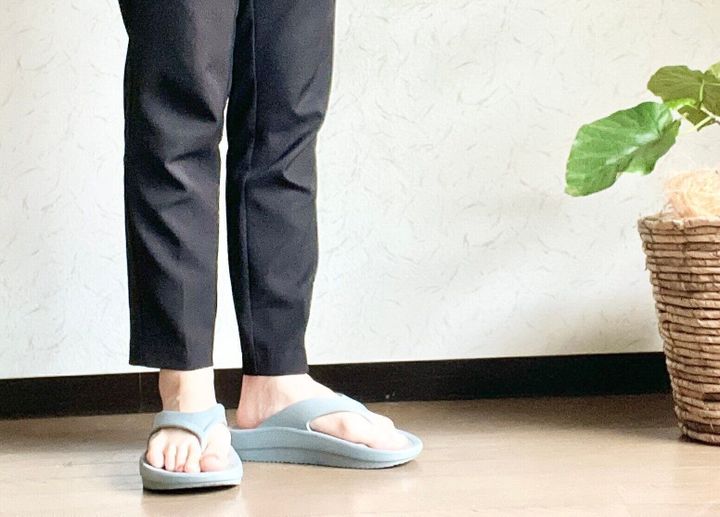 底も厚くてクッション性があり、履き心地もとてもいいですよ。外でも充分履けるアイテムです。パッと見は「リカバリーサンダル」だと思うのでは?