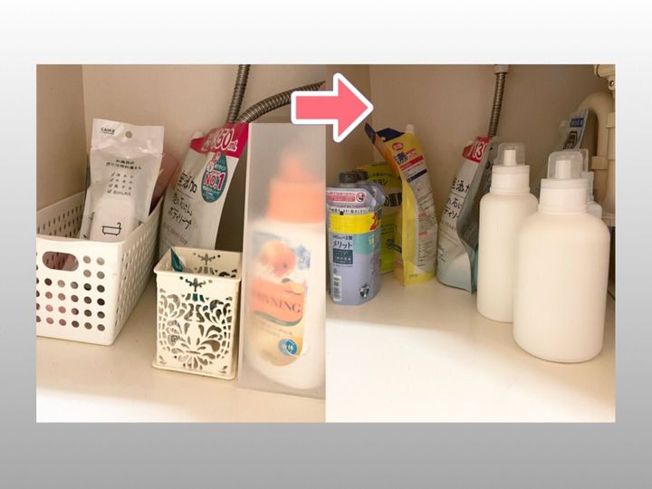 いらないモノも捨てて、洗剤や詰め替えストックを一度そのまま入れてみたところ、「あれ?なんだかスッキリしている?このままでいいかも!」と感じる結果に。