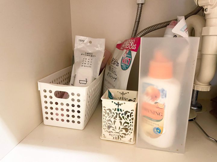 洗面所の洗面ボウル下の収納に、プラスチックのボックスを使用していました。そこに洗濯洗剤や、シャンプーの詰め替えストックなどを入れていたのです。