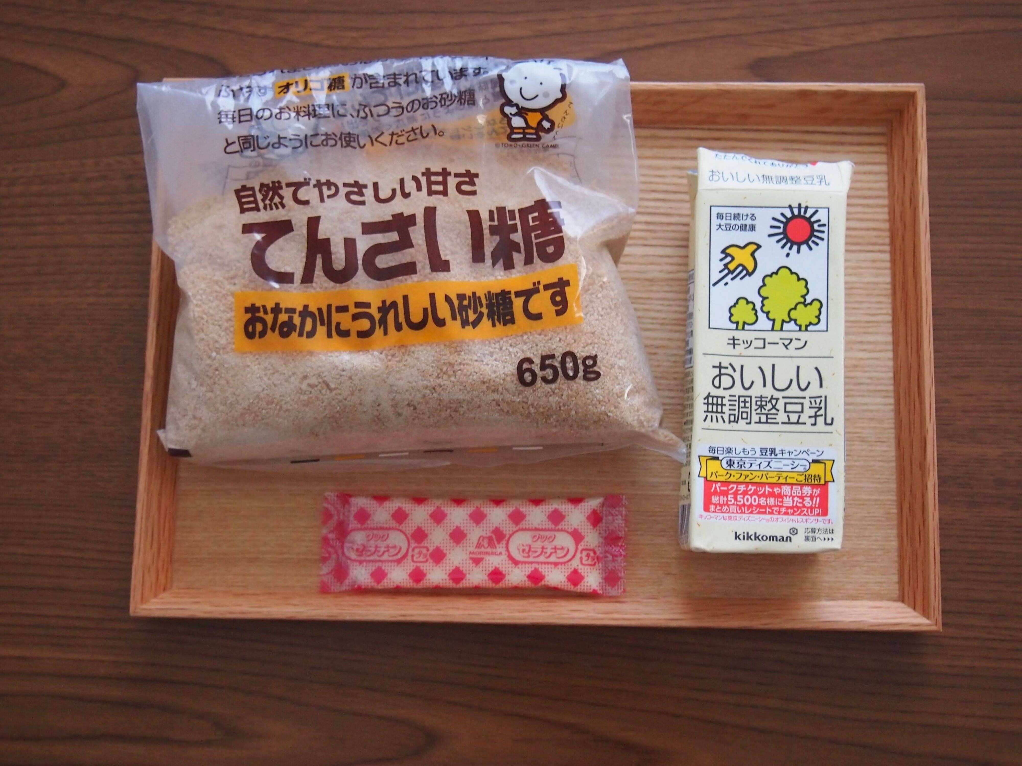 ・豆乳は無調整豆乳だと、好みの甘みに調整しやすいです。今回は小パックを2本使いました。