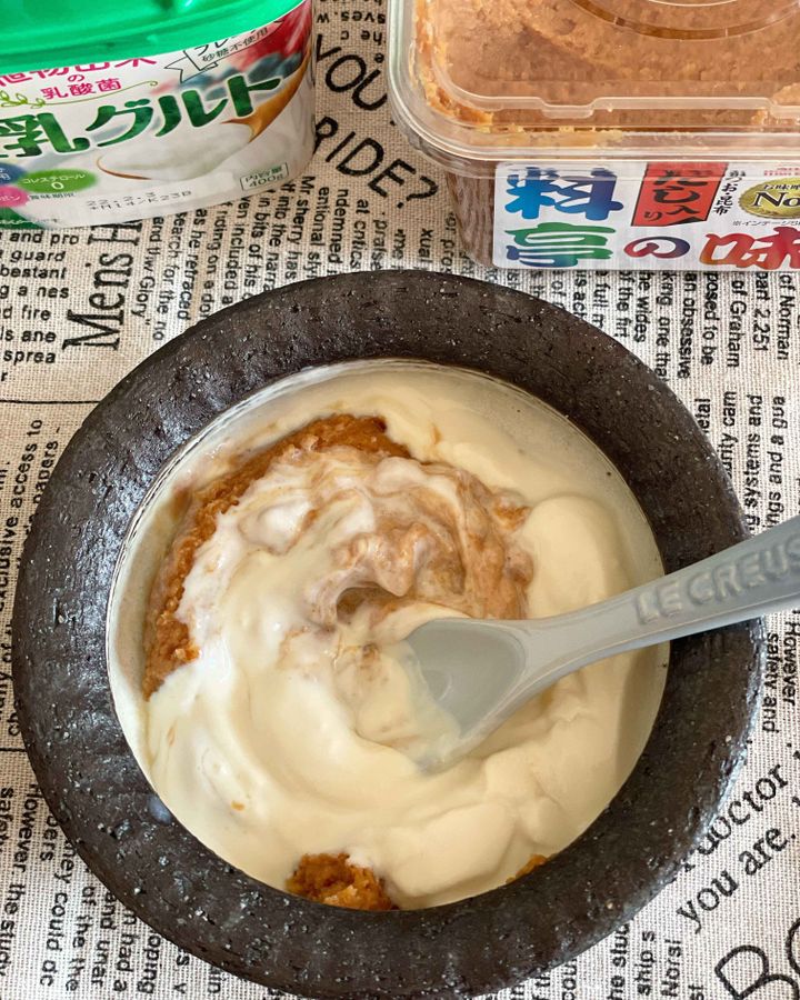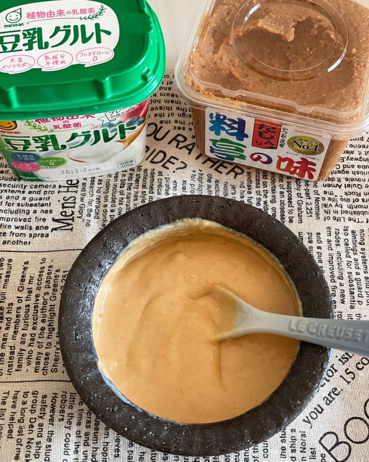 味噌と豆乳ヨーグルトを同量混ぜるだけです。