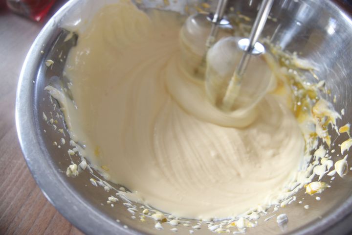 1.ボールにA(マスカルポーネ、卵黄)を入れて、泡だて器で白っぽくなるまで混ぜる。