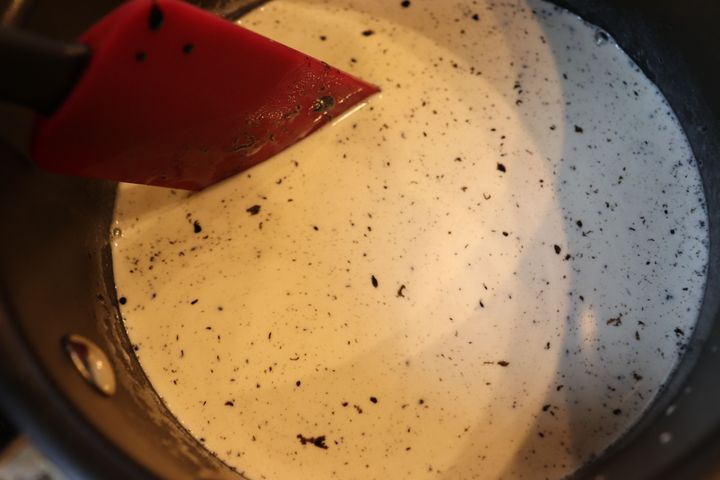 1.小鍋に牛乳、生クリームを入れて火にかけ、沸騰直前で火を止める。