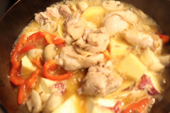 今回はお野菜も一緒にとれるように、旬のさつまいも、マッシュルーム、パプリカを一緒に煮込んでつくりました。