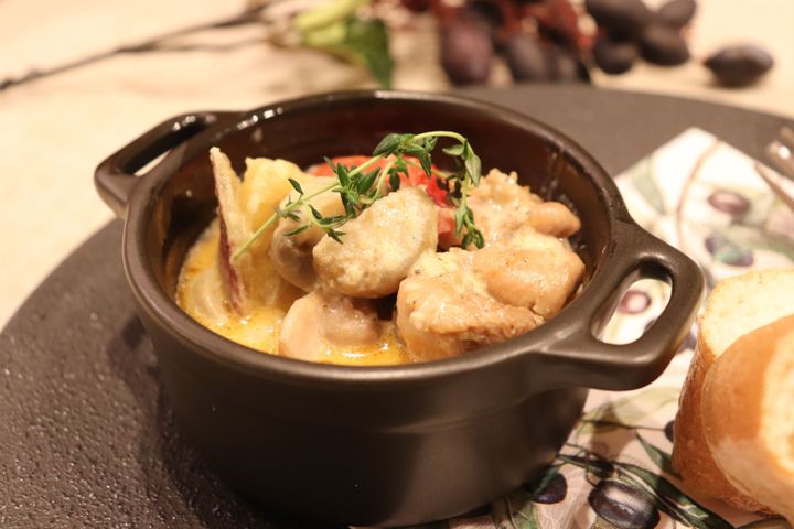 こちらのシュクメルリは、フライパン一つで簡単にできてしまうお料理。