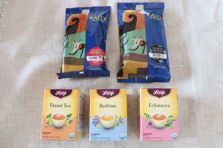 ヨギーティは、朝にエキナセア、昼にスロートティ、夜にベッドタイムをいつも飲んでいます。無くなりそうになるとカルディに買いに行くリピート商品です。