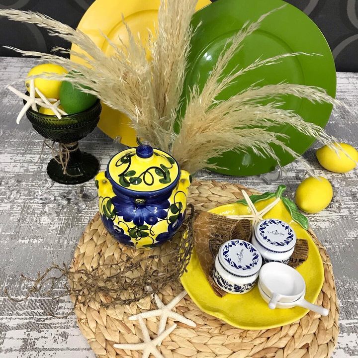 陶器の入れ物が、南仏プロバンスを思わせるような白と青で、地中海をイメージしたテーブルコーディネートをする際に、美術品として購入。