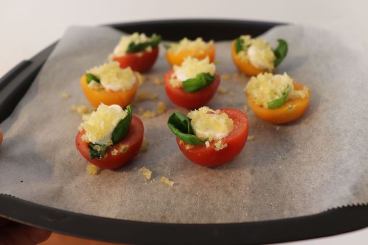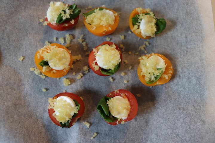 15分で盛り付けまでできてしまうこちらのカプレーゼのパン粉焼き。