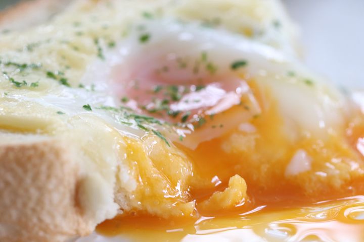 2.中央のくぼみの部分に卵を落とす。