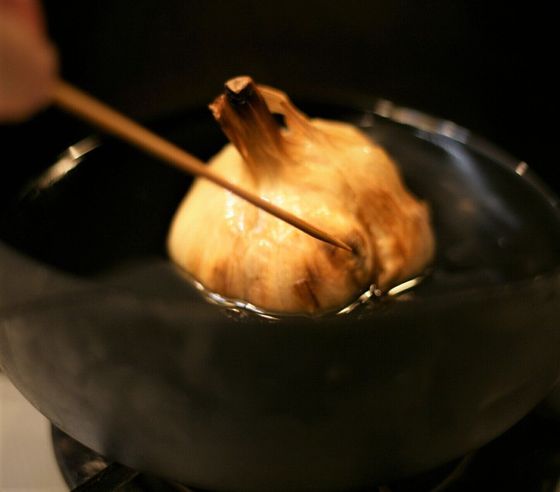 今日は、豪快なにんにくの丸揚げをご紹介しました。揚げ立てはほくほくしておいものような食感、甘くてお箸が止まりません。ビールによく合います!お好みで黒コショウをかけて召し上がってください。お肉の付け合わせにもなりますよ。