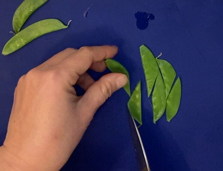 9.器に盛って絹さやと白髪ねぎを飾る。