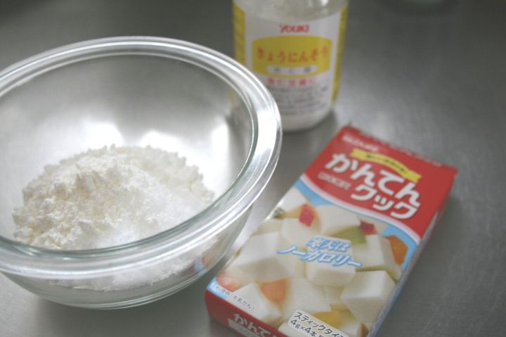 2.粉寒天を入れ1分かき混ぜ上白糖と杏仁霜を加えよく混ぜる。