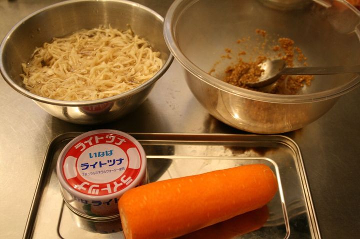 切り干し大根、人参の水気をよく切ることが大切です。