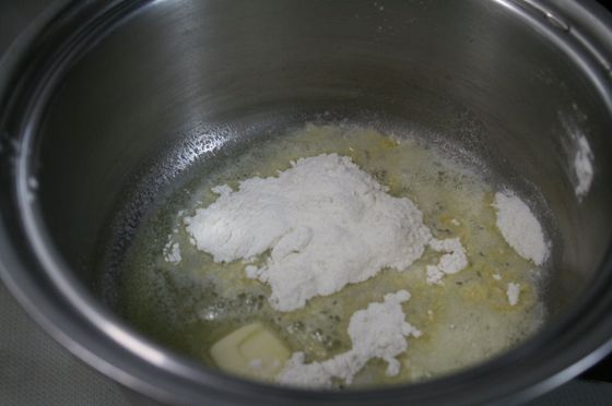 1.鍋にバター入れ弱火で溶かし小麦粉を加え炒める。