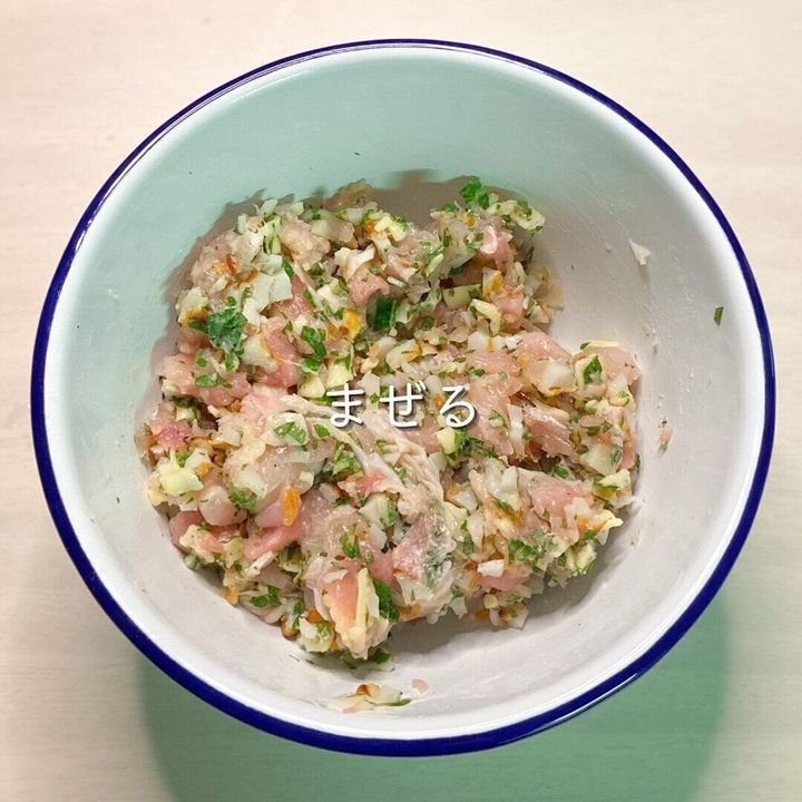 【見てわかるお絵かきレシピ】ちくわと大葉の焼きつくね