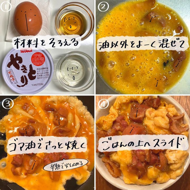 ②やきとり缶(タレごと)、卵、みりんをよく混ぜる