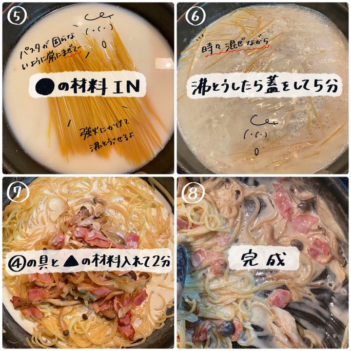 →パスタの種類で時間とか変わってくると思うので微調整してね
