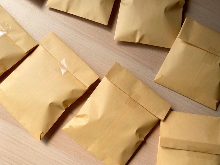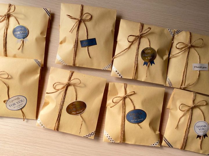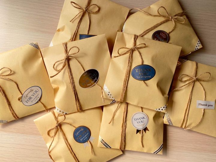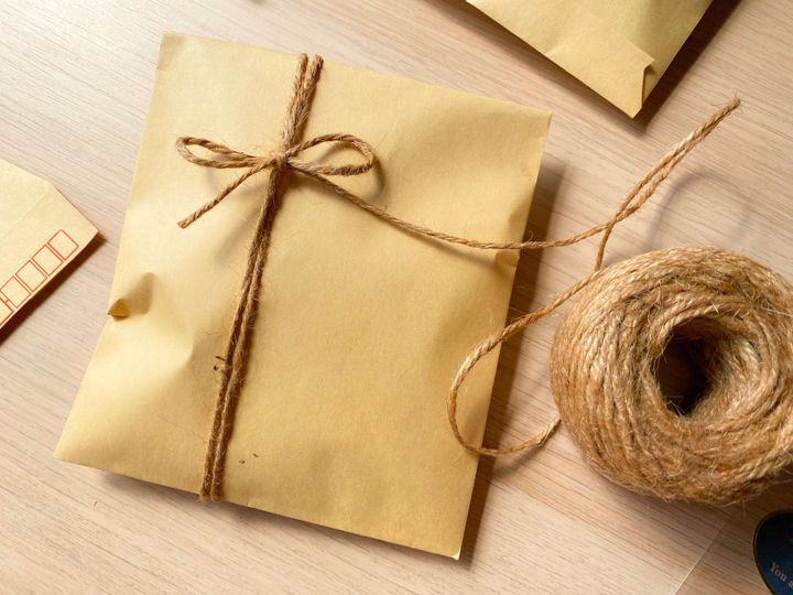 ラッピング用のクラフト袋は結構薄かったり、色もやや暗めなものがあって、ラッピングの仕方では安っぽい仕上がりになってしまう事もあります。でも郵便用の茶封筒だと明るくて結構しっかりした素材のものが多いのでラッピングのし易さは抜群です。