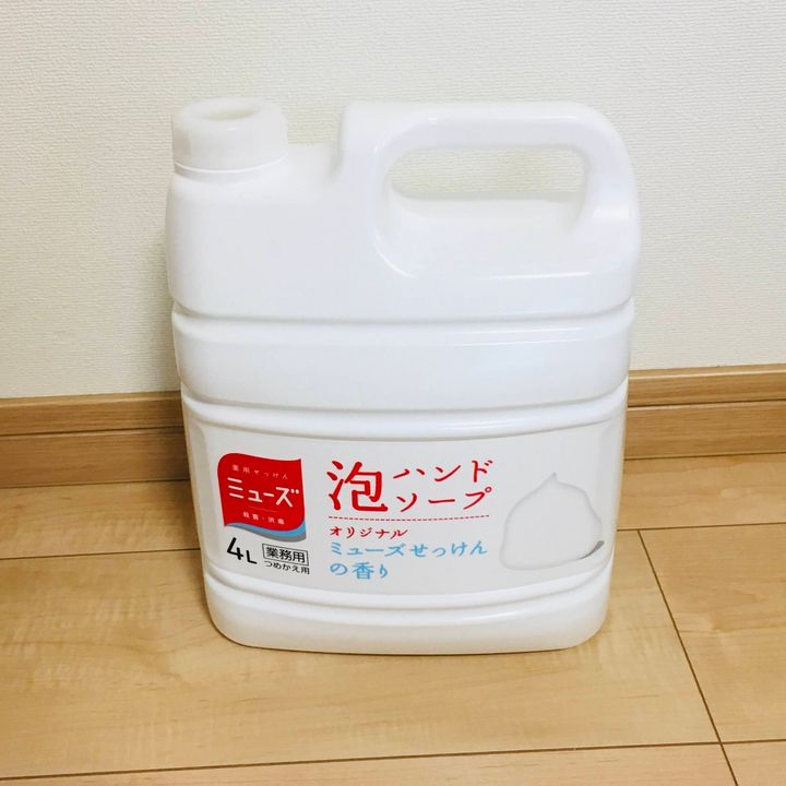 洗濯石けんは5ℓボトルをいつも購入していたのですが、泡ハンドソープの業務用4ℓボトルを見つけました。