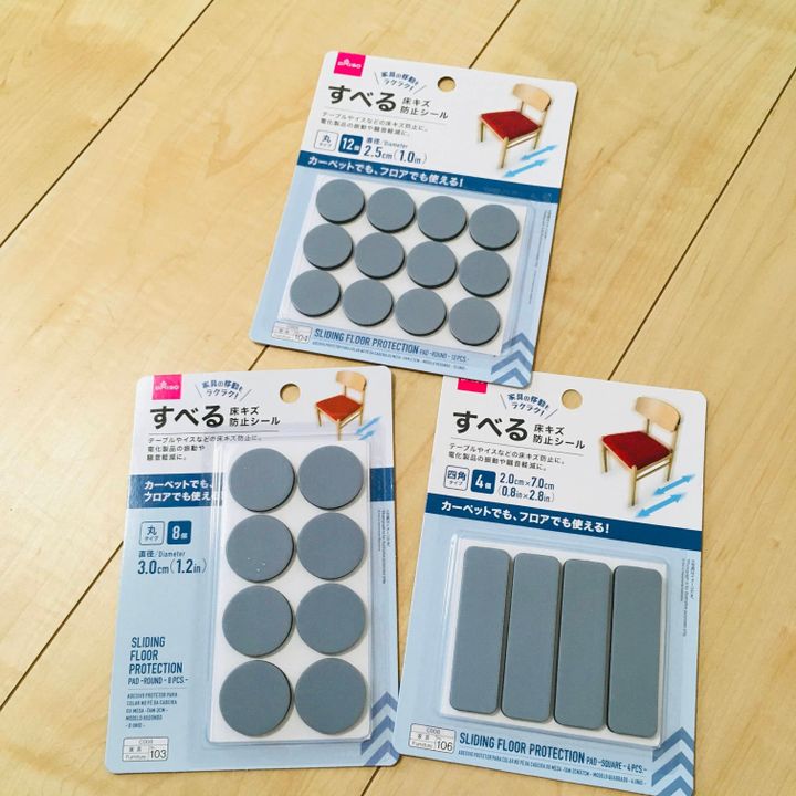以前は椅子用靴下を履かせたり、フェルトタイプのシールを貼っていましたが、使っているうちにズレてきたりホコリや髪の毛が付いたりとプチストレスが溜まっていました。