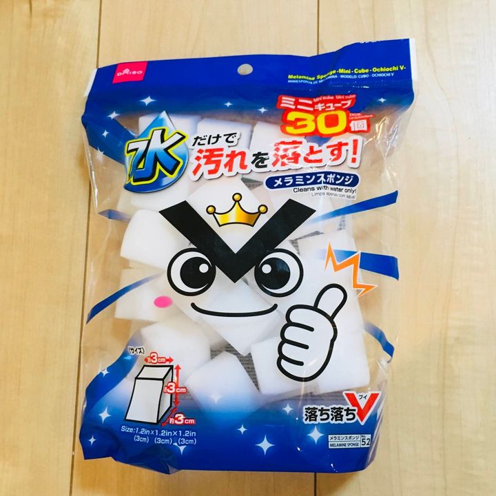 ダイソーの【ミニキューブ型メラミンスポンジ】は30個入りと大容量でたっぷり使えます。