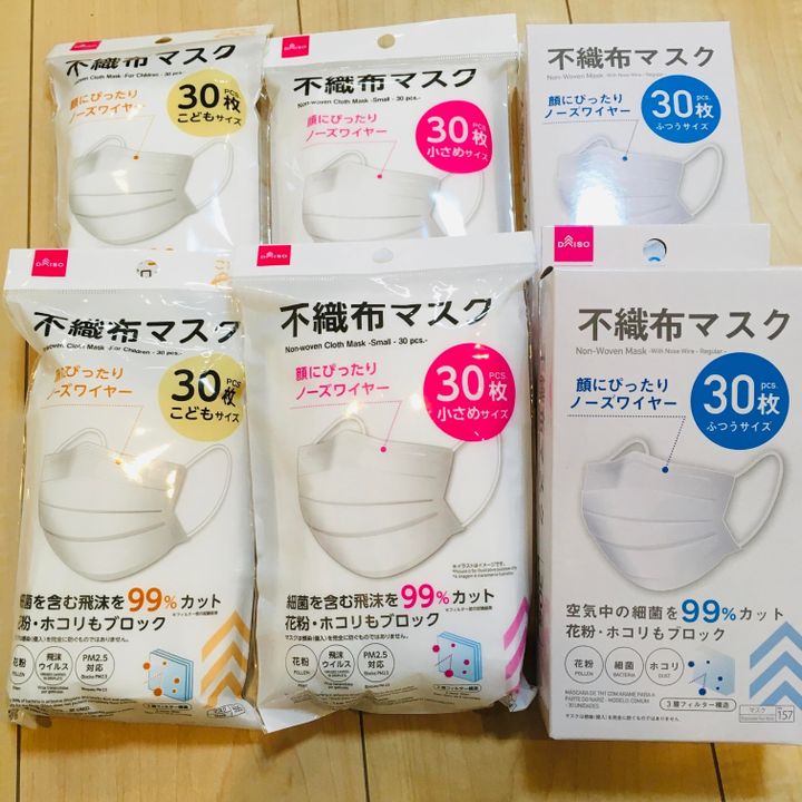 ダイソーの不織布マスクは30枚入りで、家計にも優しく助かっています。