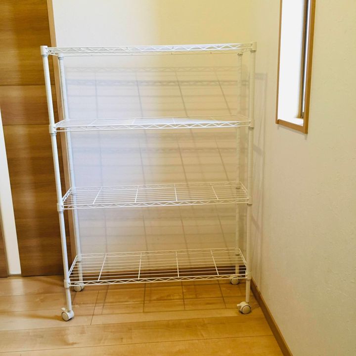 そこで、軽くて組み立ても簡単な「スチールラック」を置くことに。