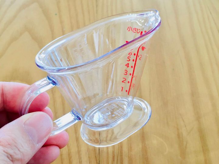 目盛がカップの中にあり、上から見えるのでノンストレスで計量できます。