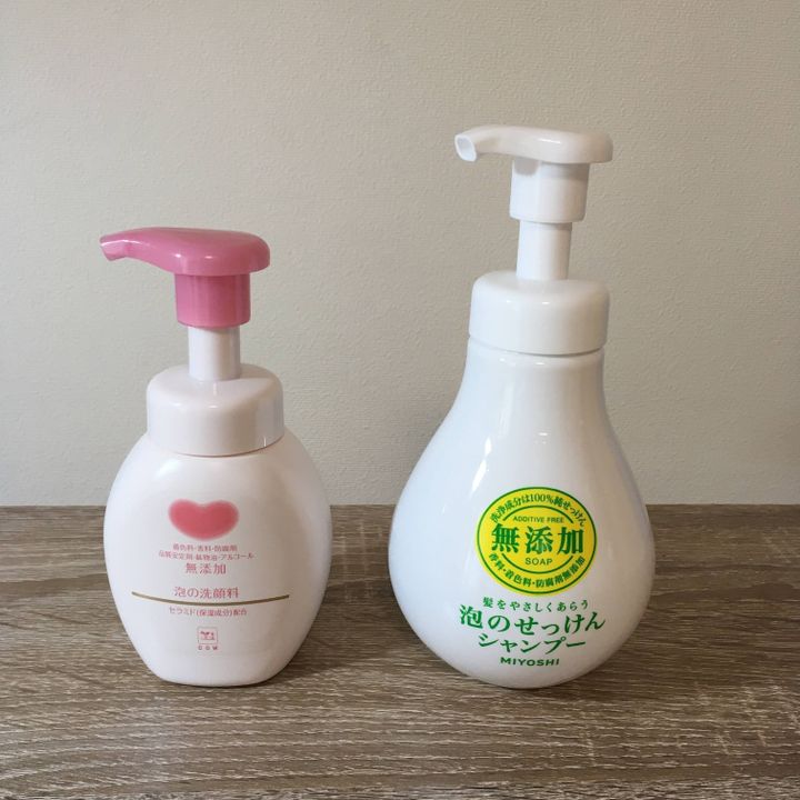 お風呂で使うのは、固形石けん、石けんシャンプー、石けん洗顔料の3つだけになりました。