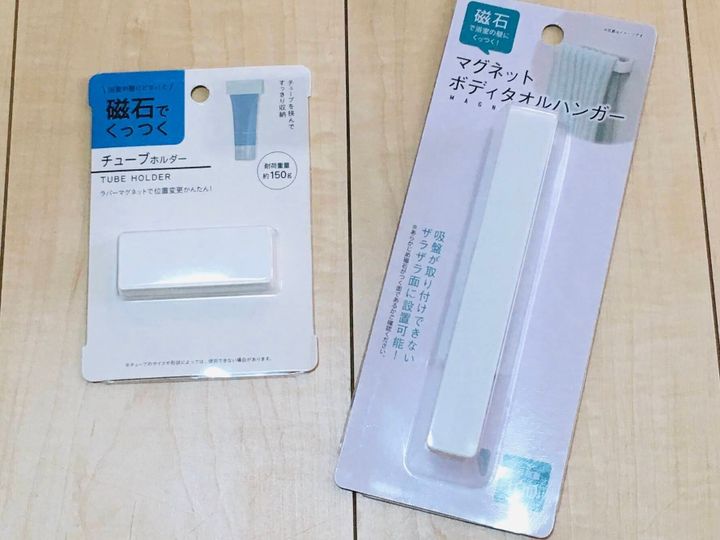 セリアで見つけた「磁石でくっつくチューブホルダー」はチューブを挟んでスッキリ収納できるという優れもの。
