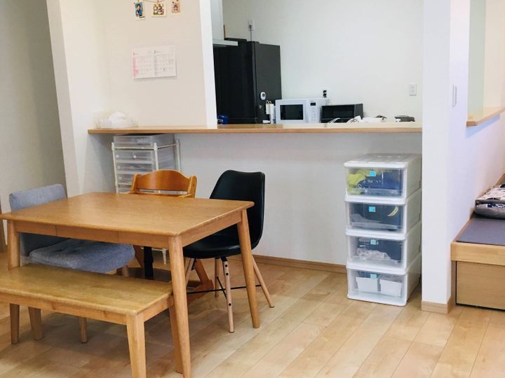 わが家のリビングは3人の子どもたちが宿題をしたり、おもちゃで遊んだりと雑然としていることが多いのですが、すぐに片付きます。