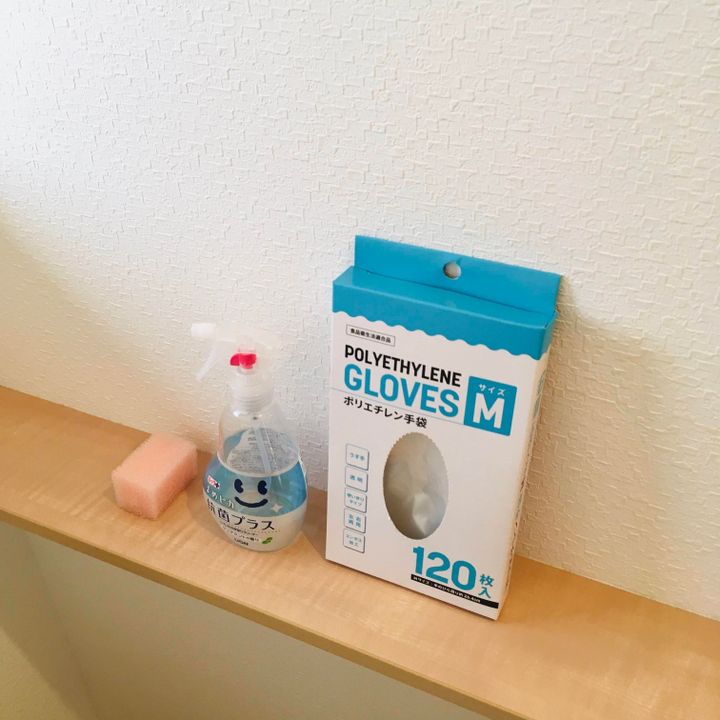 スポンジの水気を絞り、手袋と一緒に捨てておしまいです。