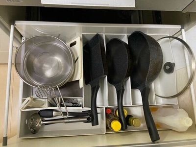シンク下などは掃除用品、コンロ下などは調理器具が入ってるかと思います。