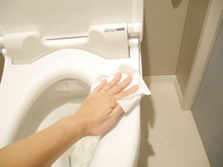〇トイレ本体を拭く(フタ⇒便座⇒便器のフチ⇒側面)