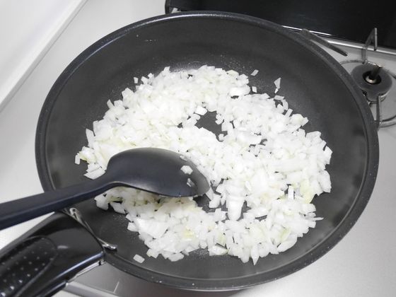 フライパンを火から上げて、そのまま玉ねぎを冷まします。